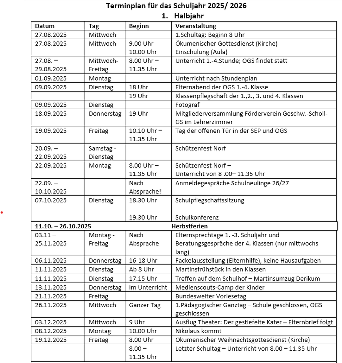 Terminplan für das 1. Halbjahr 2526 NEU.